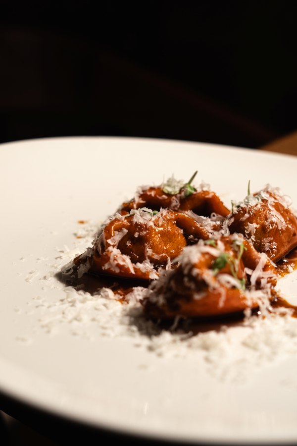 También brilló el agnolotti del plin, una pasta rellena que llegó con una delicada salsa de vino tinto y un toque de jugo de carne que te abraza el alma; reconfortante, casero, con ese sabor que te transporta directamente a una cocina del Piamonte.