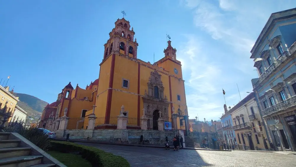 La basílica colegiata de Nuestra Señora de Guanajuato se levanta en el centro de todo, es la que roba las miradas y por supuesto que también las fotografías en su fachada.